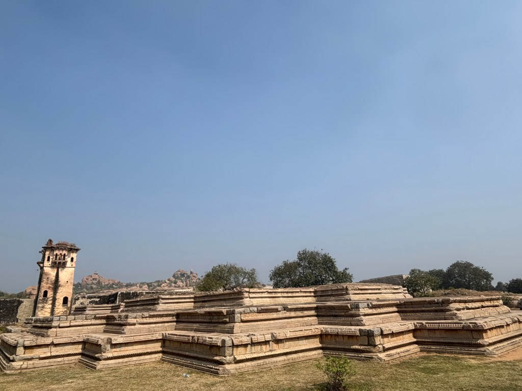 Climb the double staircase to the top, and you’ll stand where the king once presided over the grand Mahanavami festival, watching processions, sacrifices, and performances unfold below. The view from the summit offers a sweeping panorama of the royal centre—palaces, tanks, gateways, and the rugged boulder hills beyond.