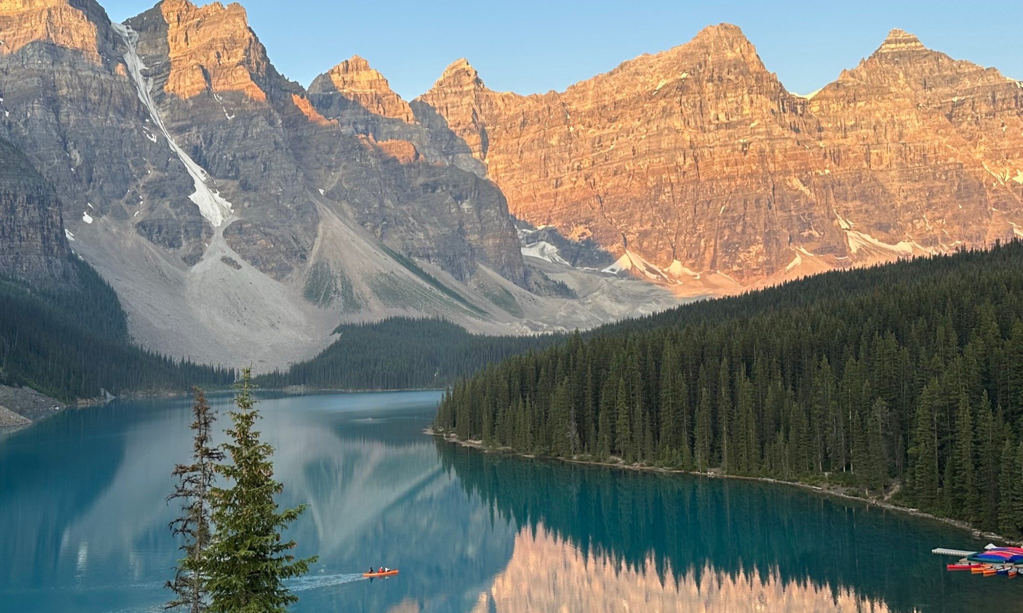 I missed going to Banff with brother and sister in 2001 and always regretted missing on that trip. When we finally decided to go in 2023, the trip was riddled with changes. Original plan has to be scrapped as it didn’t fit our schedule and I had rescheduled entire trip 2 weeks before the original date. When I looked at the weather forecast for the week we were going, it seemed likely that it is going to rain entire week and then threat of wildfires. There was no guarantee that we will have clear skies. I planned to go to Moraine Lake every day of our trip as our scheduled sunrise shuttle was on the last day and I didn’t want to take a chance of not seeing this lake in its fully glory. As it turned out that we had perfect weather for the whole time we were in Banff and the day we went to see sunrise, we had a “Blue bird” day with perfect blue skies.