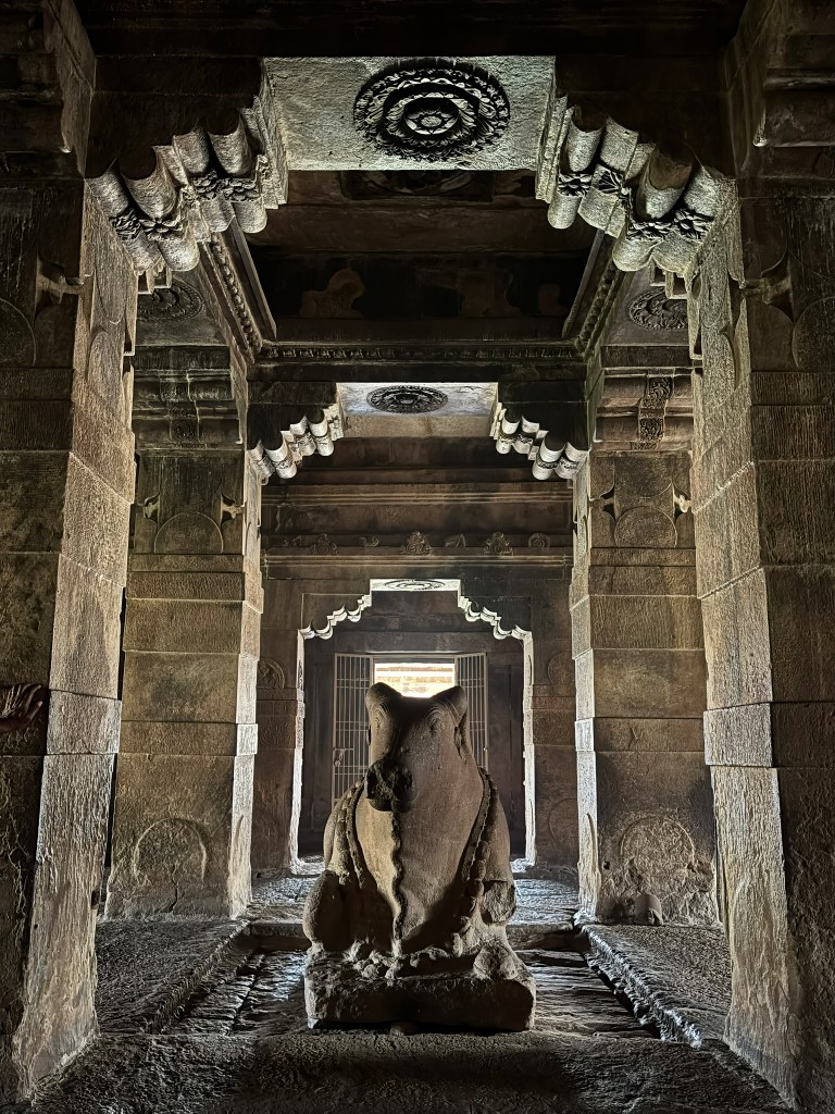 We really enjoyed visiting this unique temple for its architecture. My favorite part is the photograph of Nandi taken from the sanctuary. With the light in the background, this photo almost looks ethereal.