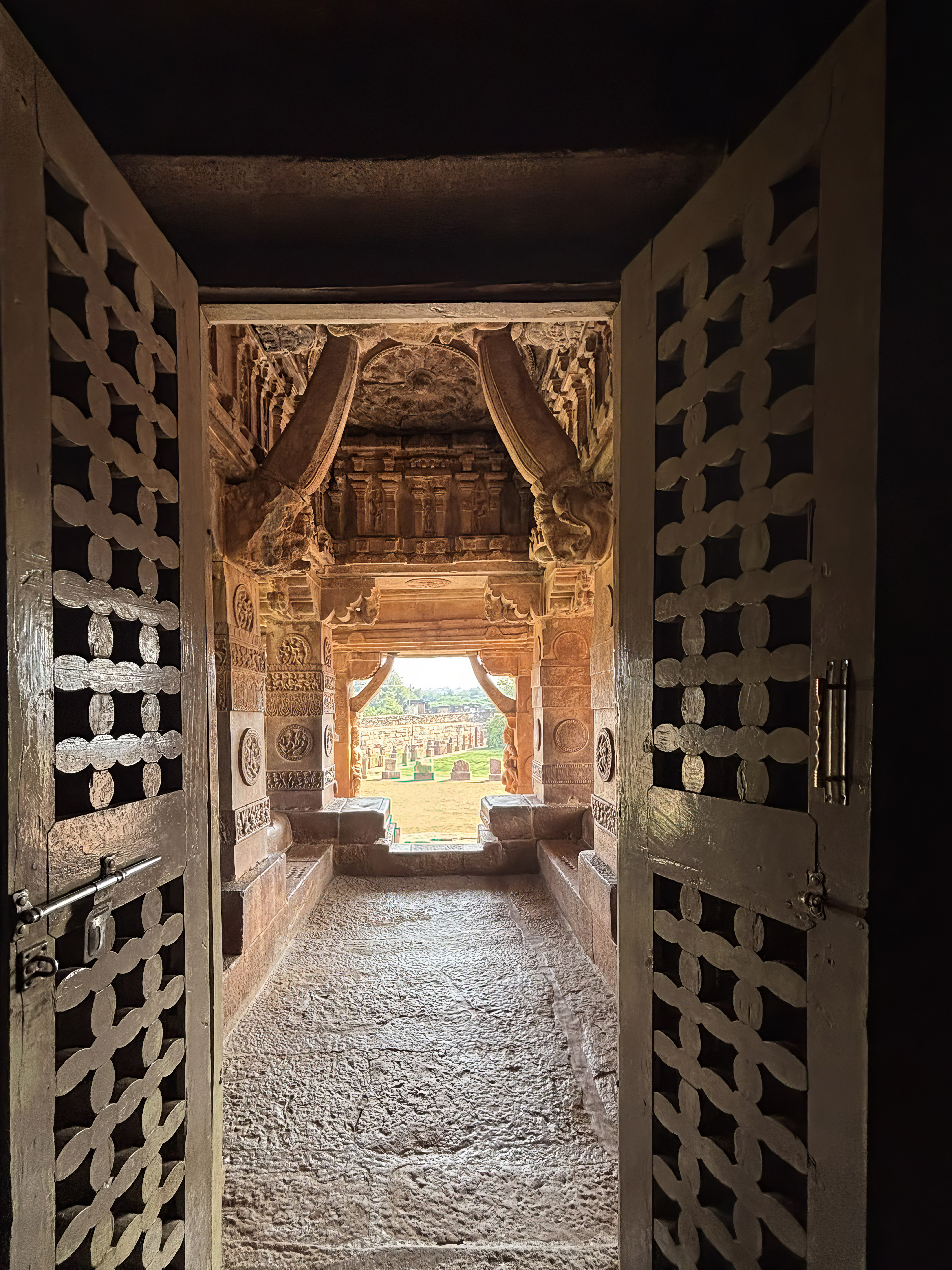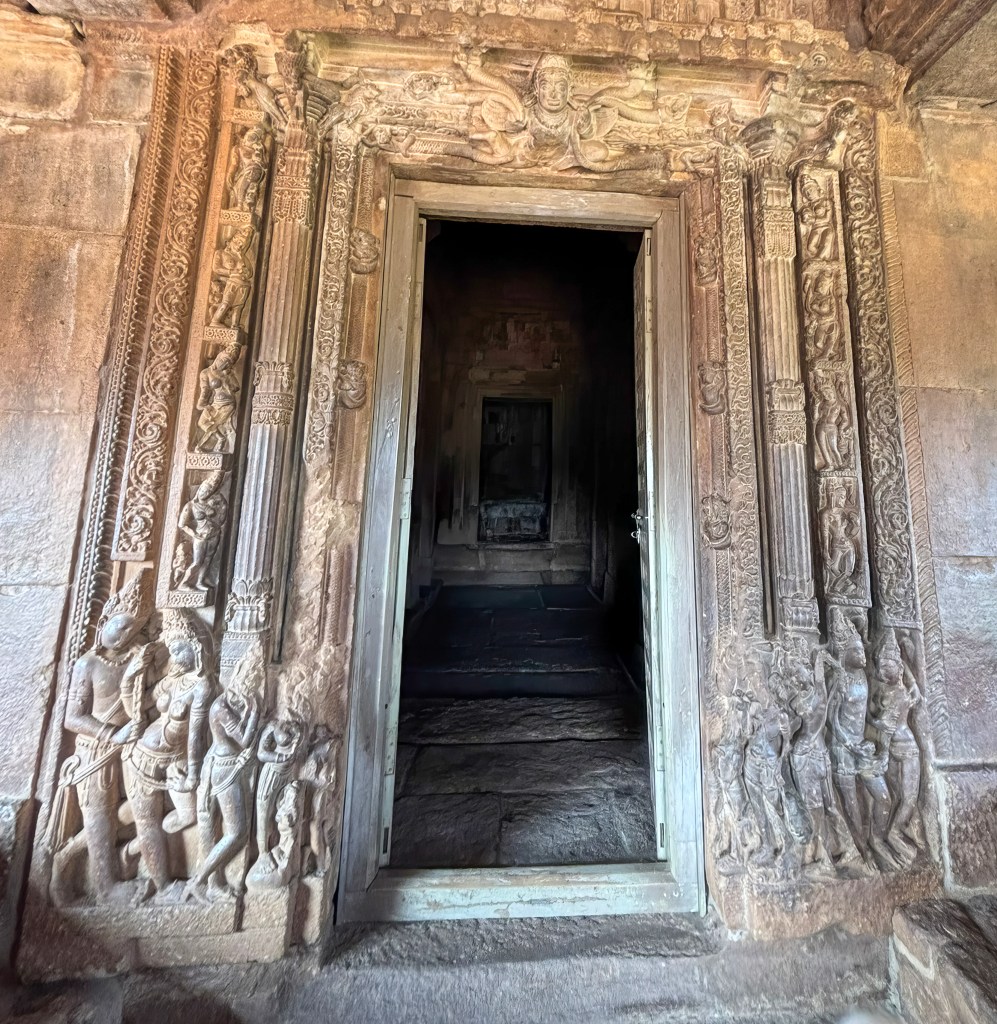 This intricate doorway, with its blend of religious and everyday life imagery, serves as a transition from the outer world to the sacred space of the temple