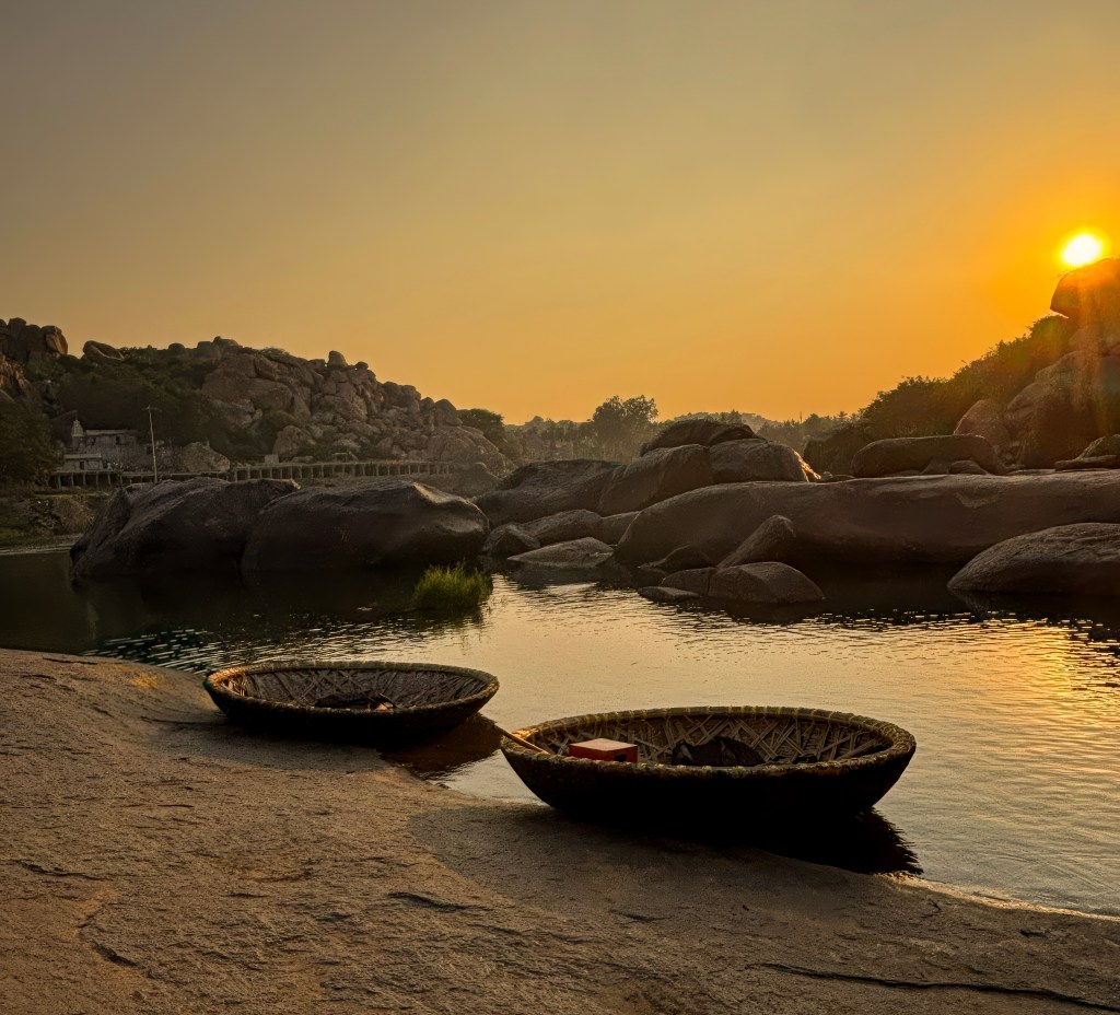 🌇 Evening: Tungabhadra Trek + Coracle Ride at Sunset