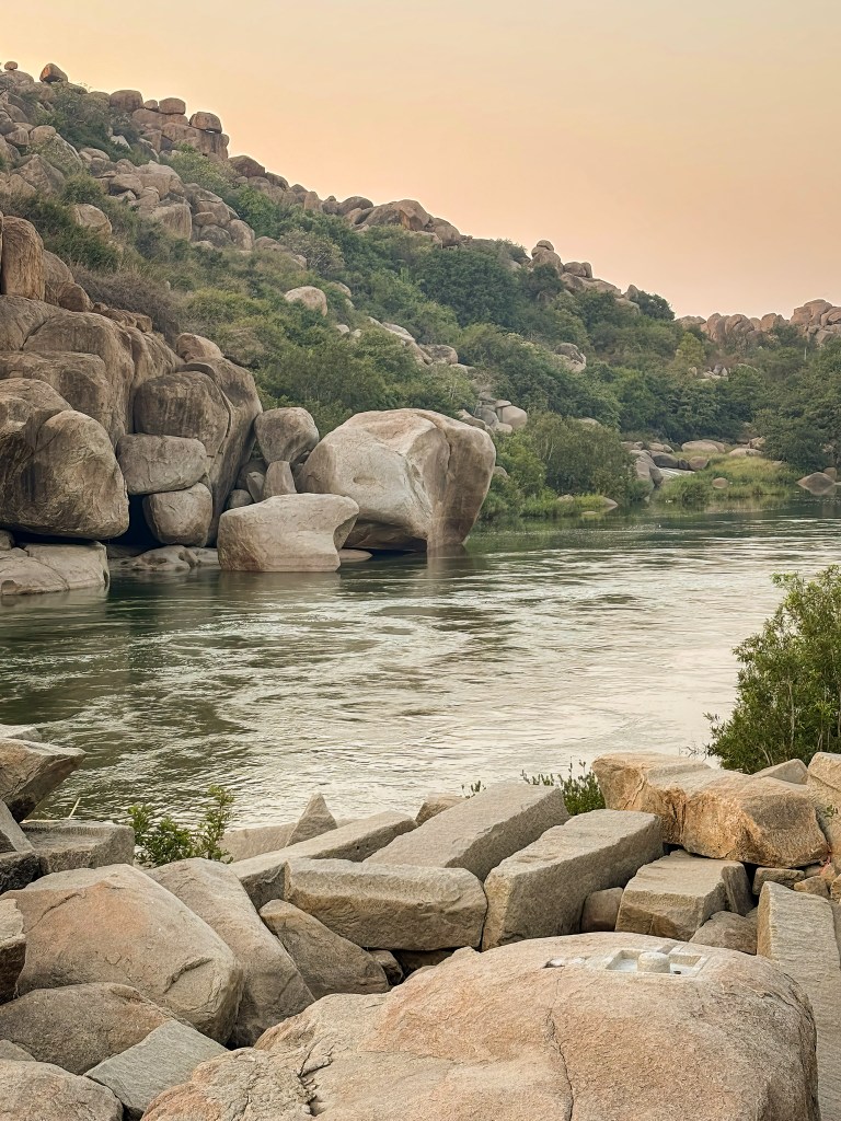 After the morning visit to Virupaksha trail, we took a much-needed break and had lunch. We headed back out around 3.30 PM to start our evening itinerary at Chakra Thirtha. We visited the riverside ruins and took a coracle ride. This was the highlight for me on this trip.