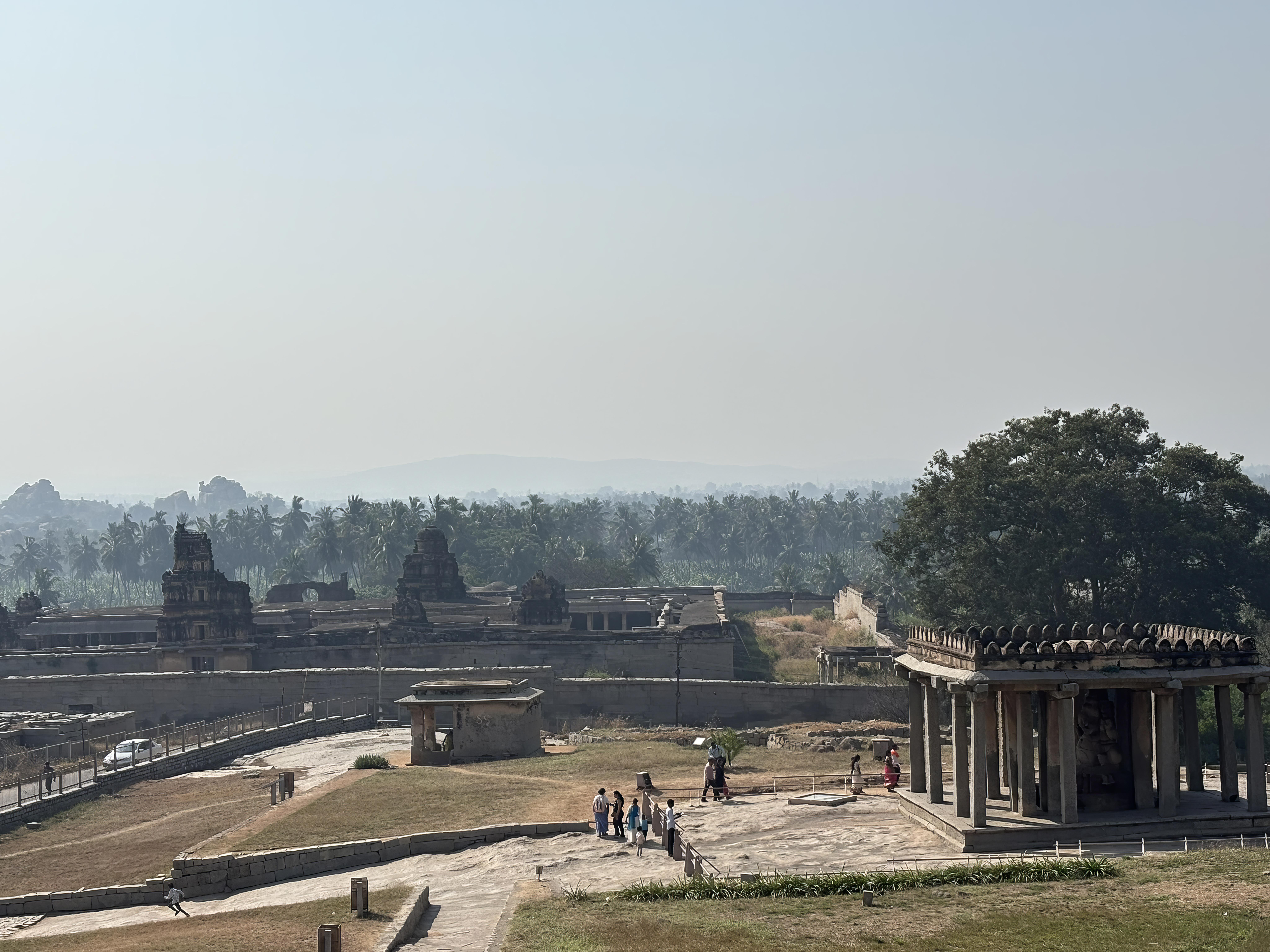 A row of stone pillars supporting a roof or canopy. In Hampi, colonnades frame bazaar streets, temple tanks, and enclosure walls.