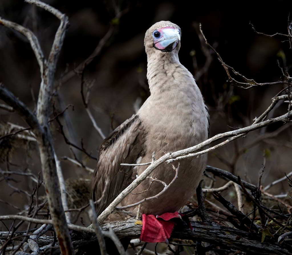 The red-footed booby is the tiniest of the boobies found on Galapagos, and it quickly proves that the nickname only tells half the story. The smallest of the Galápagos boobies is also the most agile: capable of soaring more than 90 miles over open ocean, diving up to 130 feet for fish, and using its vivid red webbed feet to propel itself underwater with surprising speed. Unlike most web-footed birds, red-footed boobies perch in trees and shrubs, giving them a unique silhouette against the island vegetation. Travelers can spot them at Punta Pitt on San Cristóbal and in large colonies on Genovesa Island, two of the best wildlife-viewing sites in the archipelago.