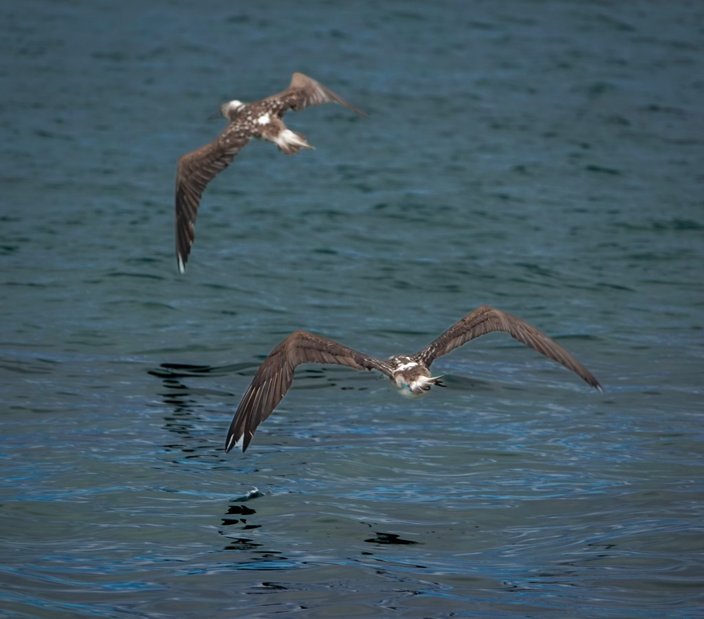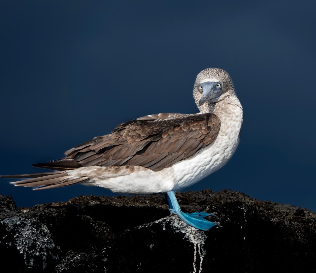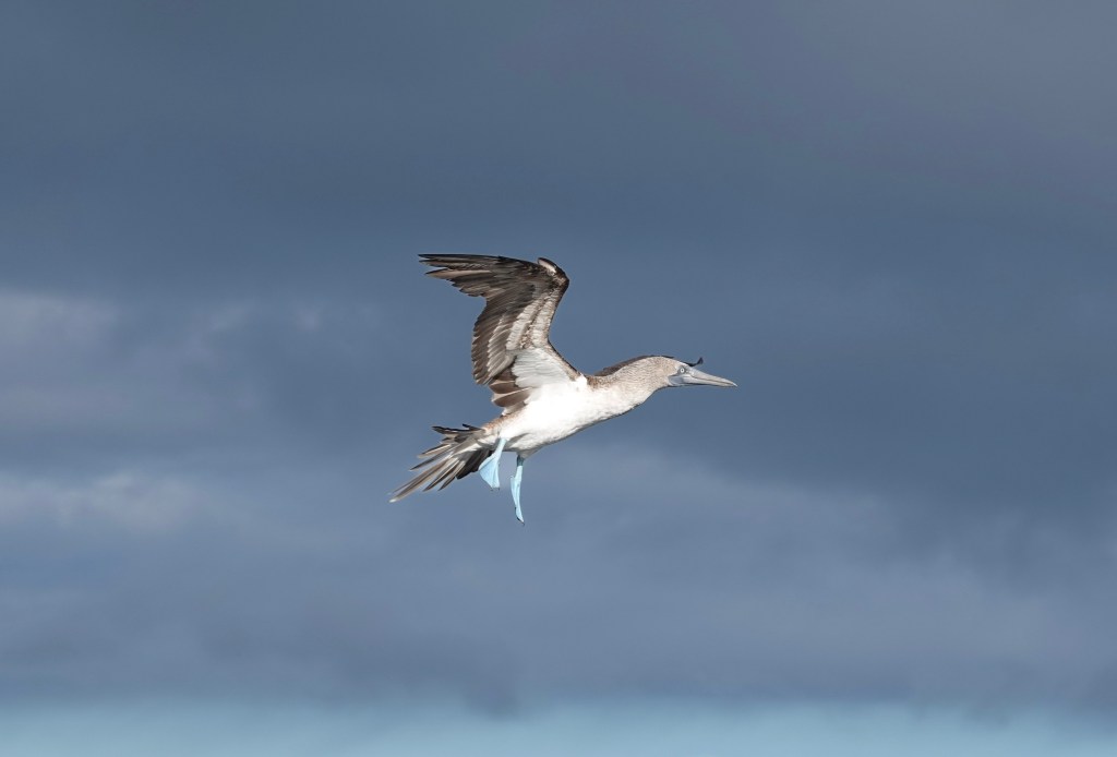 The most iconic of the trio, the blue-footed booby also carries the “bobo” name thanks to its comical walk—but its brilliant turquoise feet are anything but silly. Their color comes from a carotenoid-rich diet, and during courtship, those feet become the star of an elaborate mating dance. Males lift each foot in an exaggerated strut, showing off their brightest blues; females respond by mirroring the steps, followed by bill clacking and whistles if they approve. Beyond their charm, blue-footed boobies are extraordinary hunters, spotting fish from high above and plunging into the water at speeds approaching 60 mph. Because they have no natural predators in the Galápagos, they’re wonderfully unbothered by humans and can be seen on nearly every major island—a delight for photographers and wildlife lovers alike.