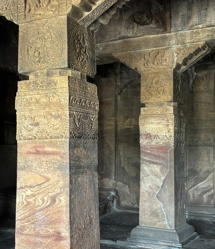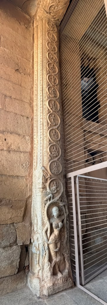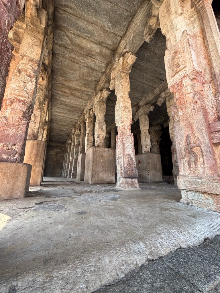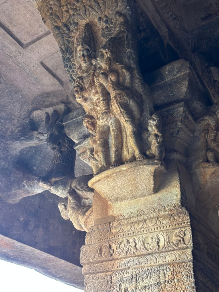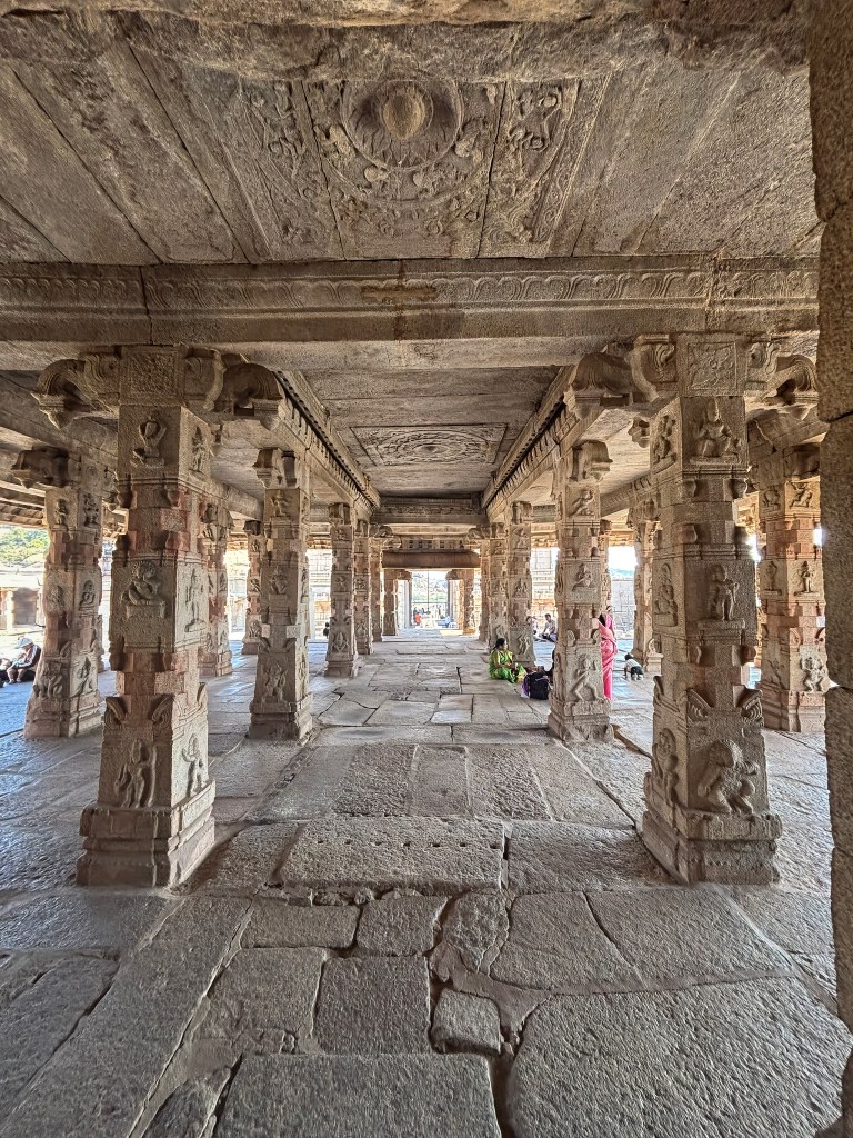 Step into the open mandapa, and you’ll encounter the legendary 56 musical pillars—the SaReGaMa pillars.