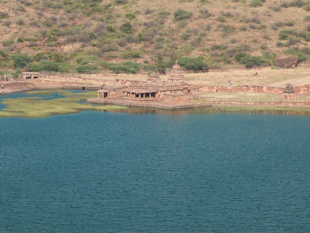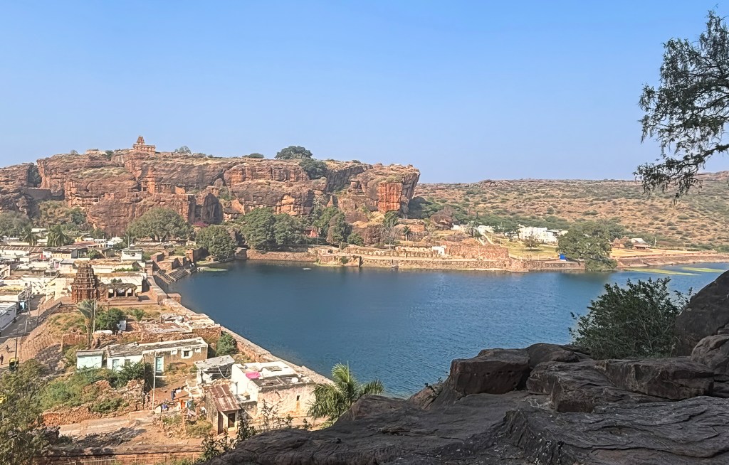 You get a great view of the lake and the town from Cave 2. Also, you can take a photo of the North fort and the Yellamma temple. You will see a lot of people taking this photo, but if you stand outside cave 2, you get a really nice shot like below