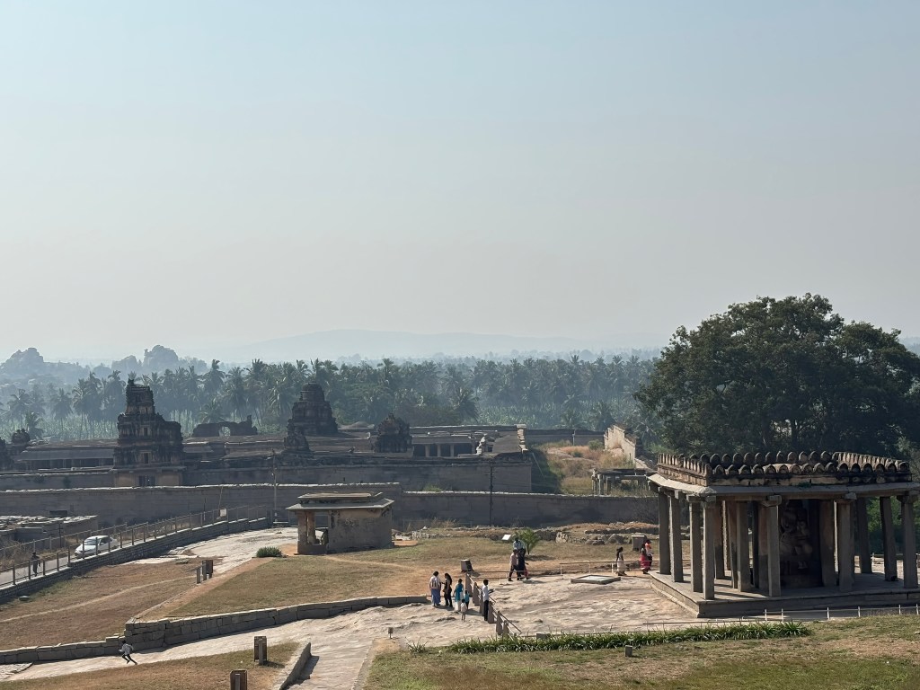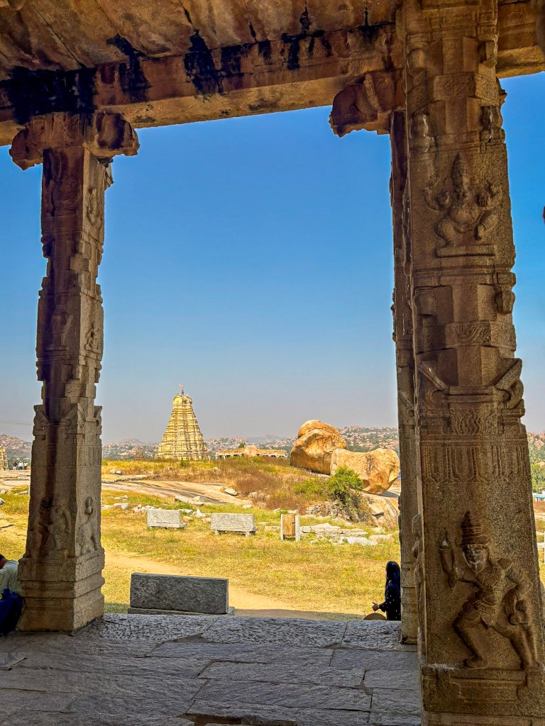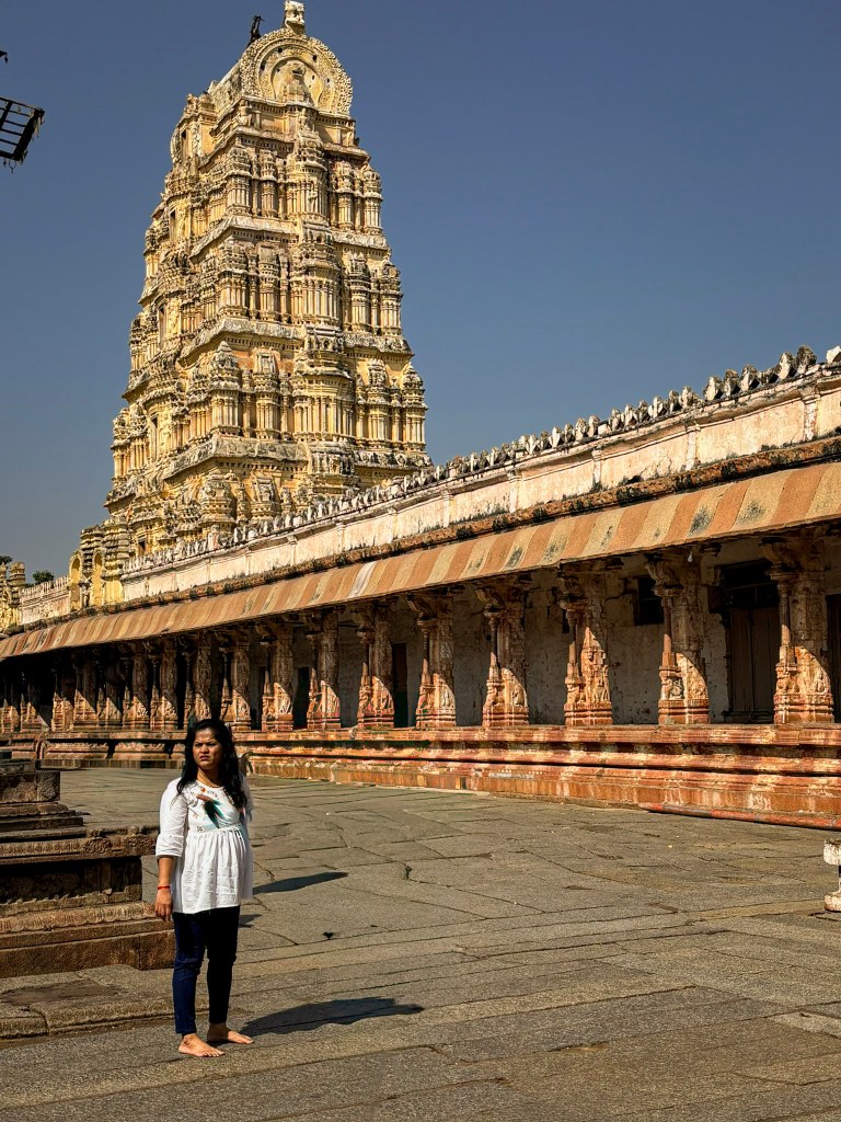 Standing here, with the river murmuring nearby and the ruins glowing in the sun, it’s easy to imagine the grandeur of those ceremonies—the crowds, the chants, the shimmering offerings, and the deep sense of devotion that shaped life in Vijayanagara.