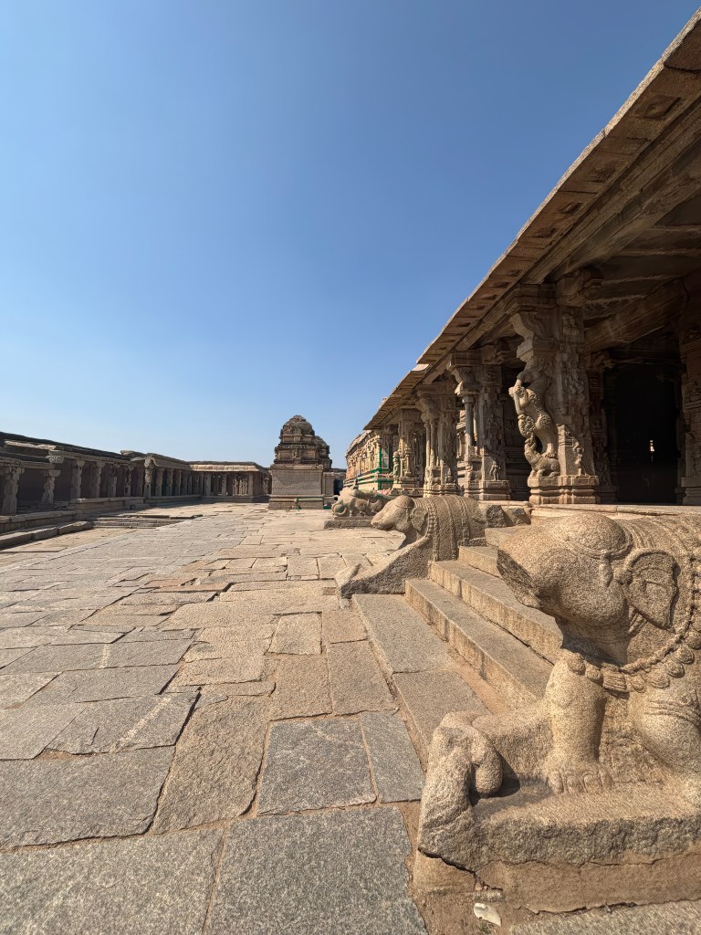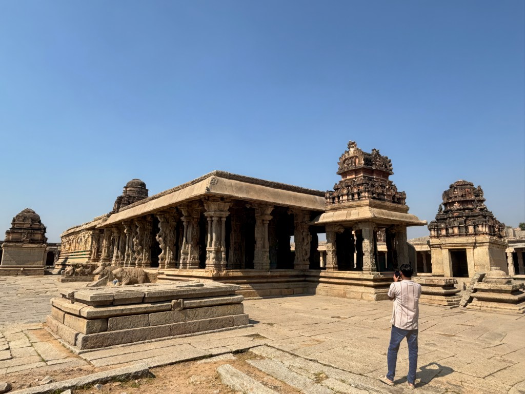 Visiting the Vijaya Vittala Temple feels less like touring a monument and more like stepping into a living memory of the Vijayanagara Empire. Every carved pillar, every quiet mandapa, every stretch of the ancient bazaar road whispers stories of devotion, artistry, and a city that once pulsed with life. The walk itself—past the Kuduregombe Mantapa, the serene Pushkarani, and the boulder‑studded landscape—builds a sense of anticipation that the temple’s iconic Stone Chariot and musical pillars then reward in full. Even in silence, the complex hums with an energy that lingers long after you leave. It’s the kind of place that stays with you, not just as a photograph, but as a feeling—of wonder, of history, and of being momentarily connected to something timeless.