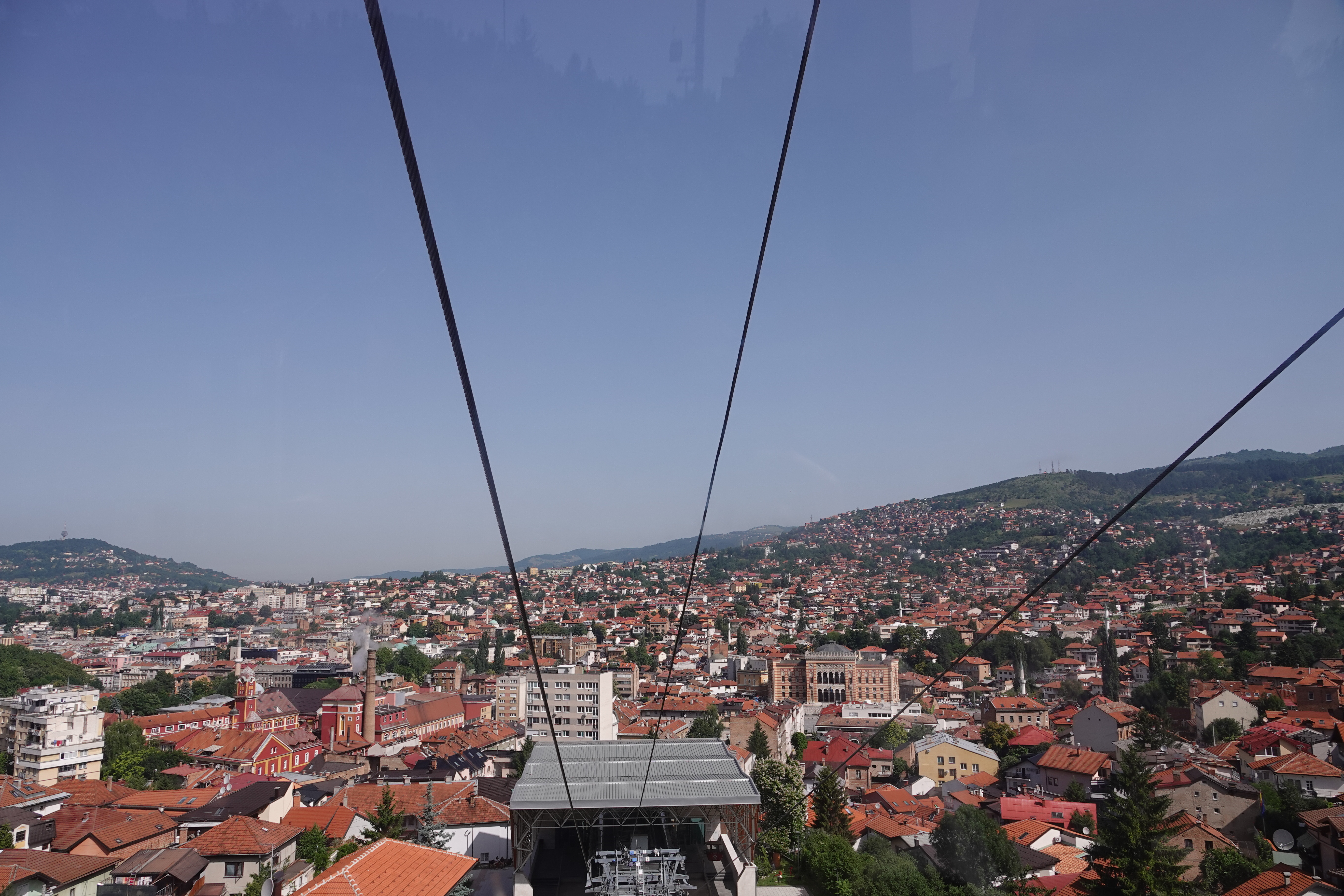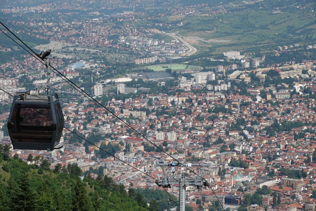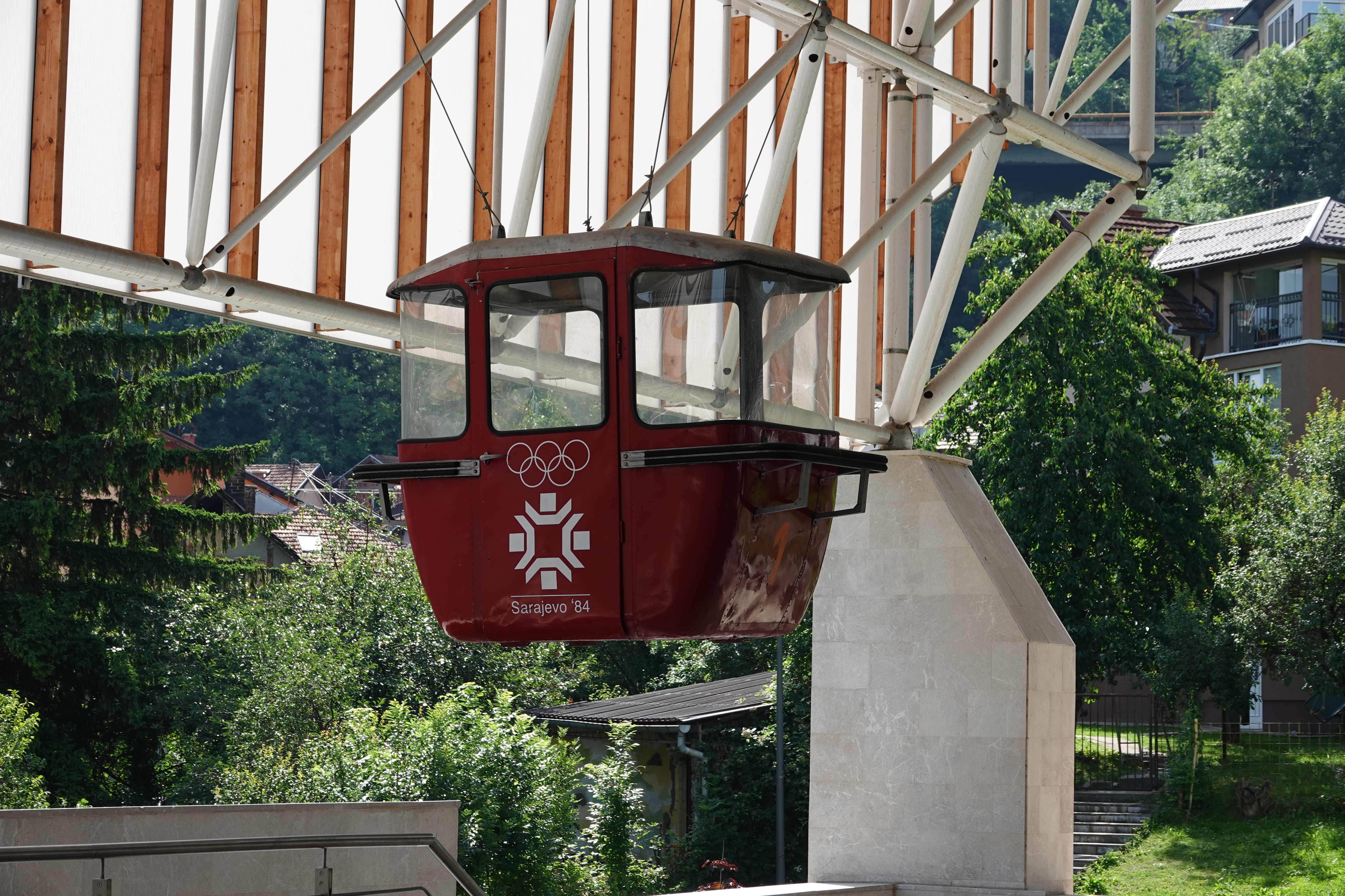 The Sarajevo cable car, connecting the Old Town with Trebević mountain, opened on May 3, 1959, initially serving 400 passengers per hour. It fell into disrepair over the years and was destroyed during the Bosnian War (1992-1995). After reconstruction in 2017-2018, it reopened on April 6, 2018, featuring 33 modern gondolas that transport 1,200 passengers per hour, with a journey time of about 9 minutes. The views from the gondola are spectacular and we took the cable car up the mountain but walked down using the bob sled track.