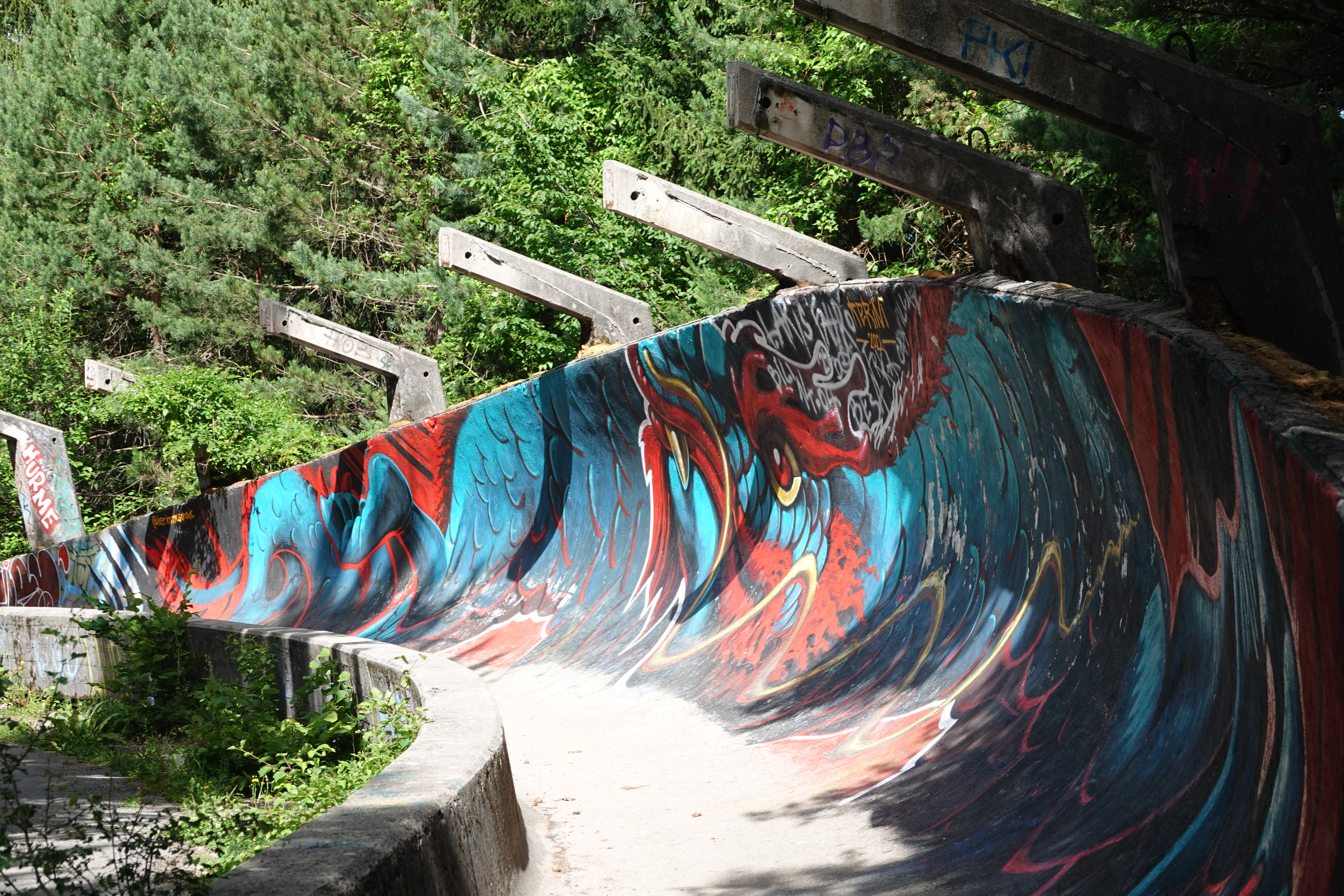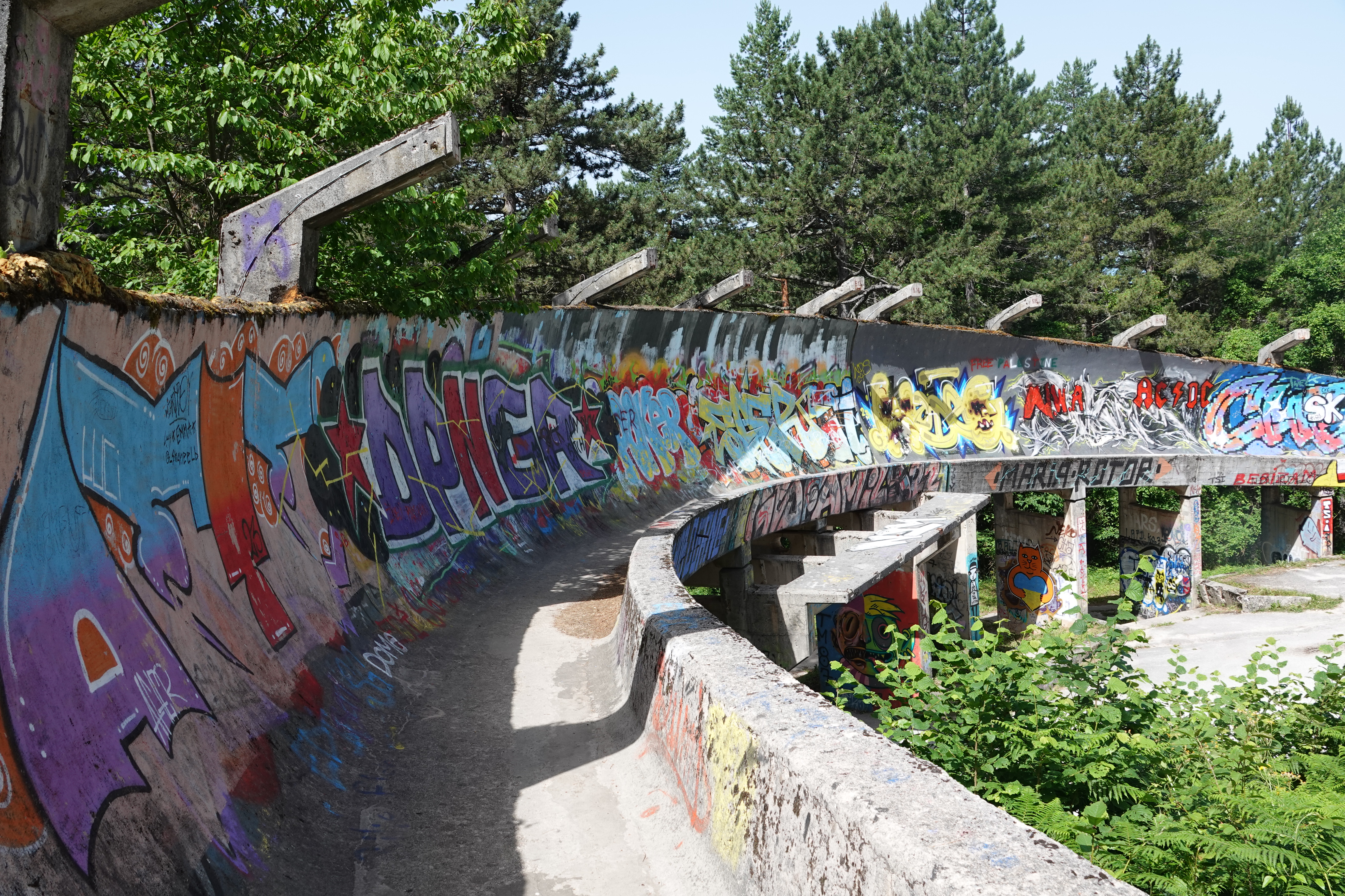 Trebević hosted bobsleigh and luge events during the XIV Winter Olympic Games in Sarajevo in 1984. After being awarded the Olympics in 1977, the construction of a bobsleigh and luge track began in 1981 and was completed in 1982 at a cost of 5.5 million Yugoslav dinars. The events attracted significant crowds, with 20,000 spectators at the luge and 30,000 at the bobsled competitions. Following the Olympics, the track was used for World Cup events until the outbreak of the Yugoslav wars in 1991, which severely damaged the track as it was repurposed for military use. Today, it has become a canvas for graffiti artists and it is fun to walk down this track with amazing views of Sarajevo and very interesting graffities and it took us about 90 min walk down.