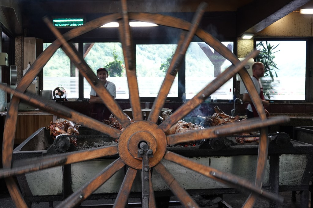 The Jablanica area is known localy well known for its ‘jagnjetina’, lamb meat made in old tradition of roasting sheep over an open fire brought fame to a series of restaurants on the main road (M17) south of the town. This part of M17 is known as lamb alley. Our friends from Mostar suggested that we should try Restoran Kovacevic Jablanica not only for the lamb but also for the view form the restaurant. We stopped at the restaurant for the view (mostly vegetarians in our group) and it was absolutely beautiful. In most the restaurant on lamb alley you can watch the sheep being roasted on a spike in the traditional way