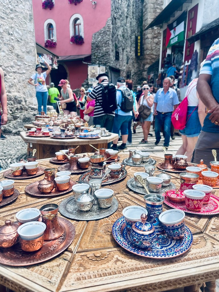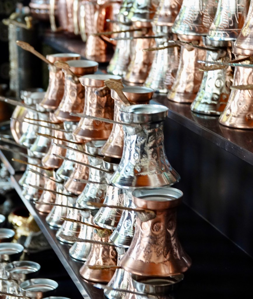 Pro tip- According to our guide, listen to the “Chink” ” Chink” noise of the copper smith working in the shop to know that you are buying an authentic, handmade item not mass-produced cheap knockoff. We found a shop in the courtyard of Koski Mehmed Pasha Mosque where the owner was working with his tools and had some really cool stuff.