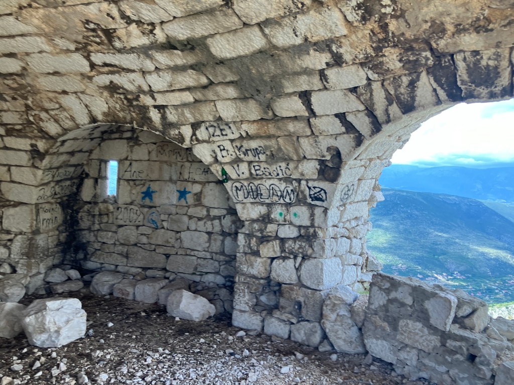 On our trip to Bosnia, we were fortunate enough to stay with a Bosnian family in Mostar. We stayed with them for 2 nights and heard war stories and had dinner with them at a local restaurant. The host house was located about 10 min uphill from the old stone bridge of the Mostar, the main attraction in the city. Like rest of the country, Mostar was also affected by the war in 1990s and our host family’s house was completely destroyed. The was on Mostar was between the between the Bosnian Croats and Bosniaks (Bosnian Muslims) and 30 year later the town is still divided into Christian and Muslim parts. During the war, the famous bridge that stood for 400 years was destroyed by the Croats and has been since re-built with international help.