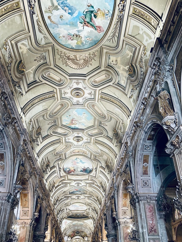 • Metropolitan Cathedral – Located in the northwest corner of Plaza de Armas, Santiagoโ€™s Metropolitan Cathedral is free to enter. Built in neoclassical style between 1748 and 1800, it features baroque elements like gilded columns and beautiful frescoes. Italian architect Joaquรญn Toesca designed the building. The stunning interior includes statues, an ornate altar with marble and lapis lazuli, and intricate stained glass. The ceiling was painted by Ignazio Cremonesi in 1906.