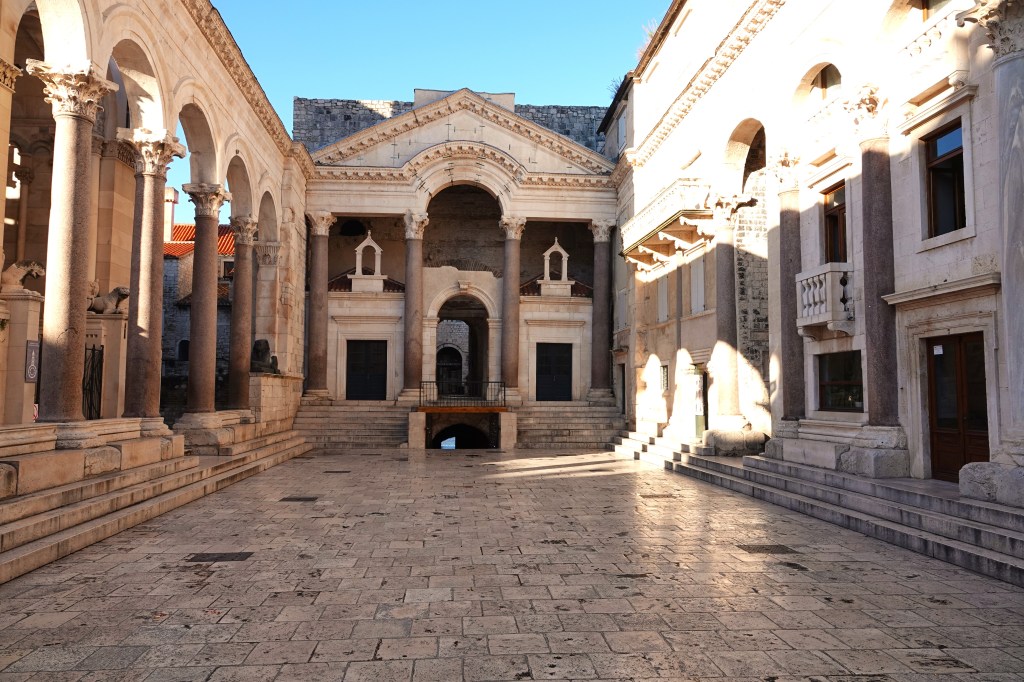 For anyone wanting to meet this important emperor, they had to walk through the Golden Gates of the palace, down what is now known as Diocletian’s Street (not as catchy as “Fifth Avenue,” right?), and through the protyron to enter the impressive vestibule. And you thought your daily commute was tough!