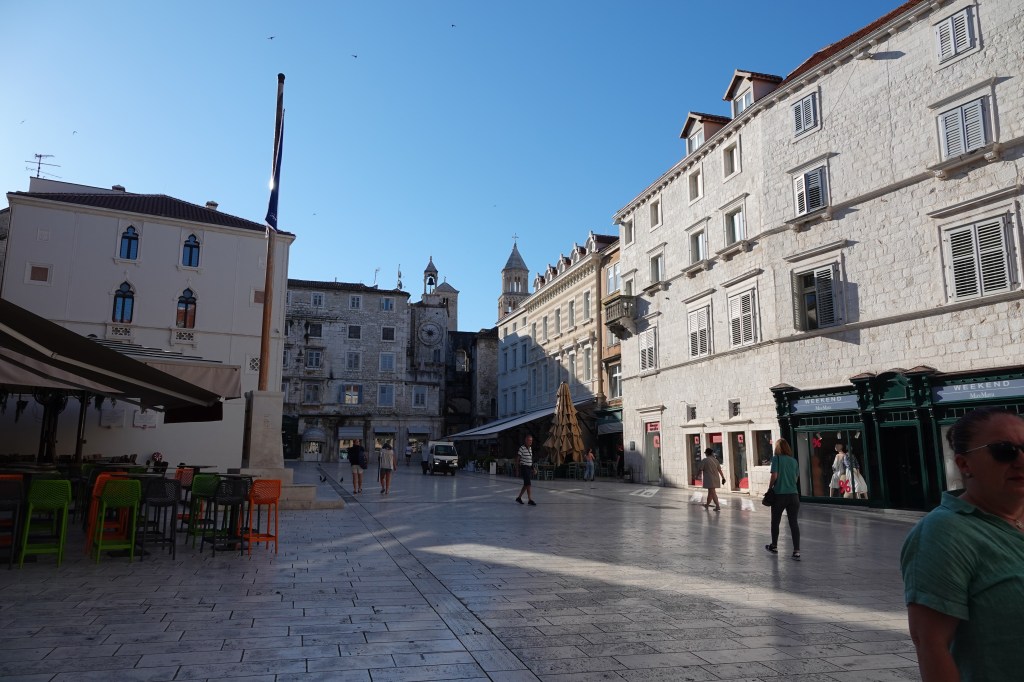 When I was roaming around old town at 7AM, I didn’t know where I was and what I was looking at but liked the old buildings in the random place and took photos of them. Later I did the research to realize that I was in people square. People square is a lively place with magnificent Renaissance and Baroque architecture with charming cafes. Known as Narodni trg  in Croatian, it is just a short walk from Diocletian’s Palace . Some of the key buildings things to see in people square include Renaissance clock tower which is one of the oldest buildings in the square and impressive one is perhaps the 15th century Town Hall