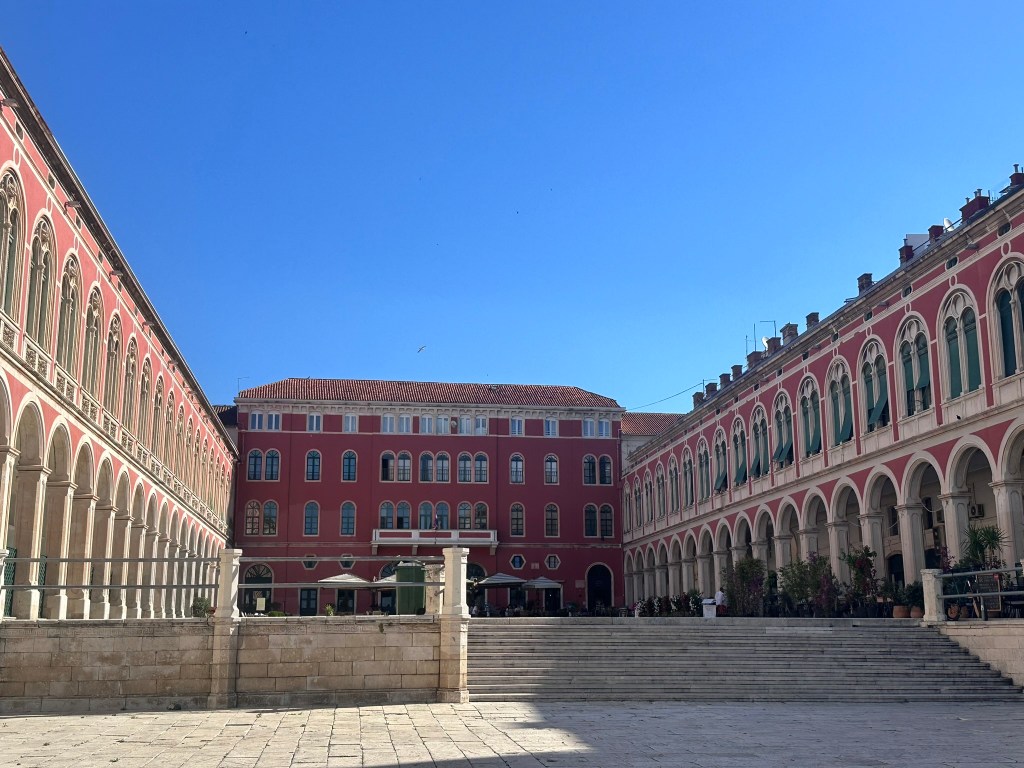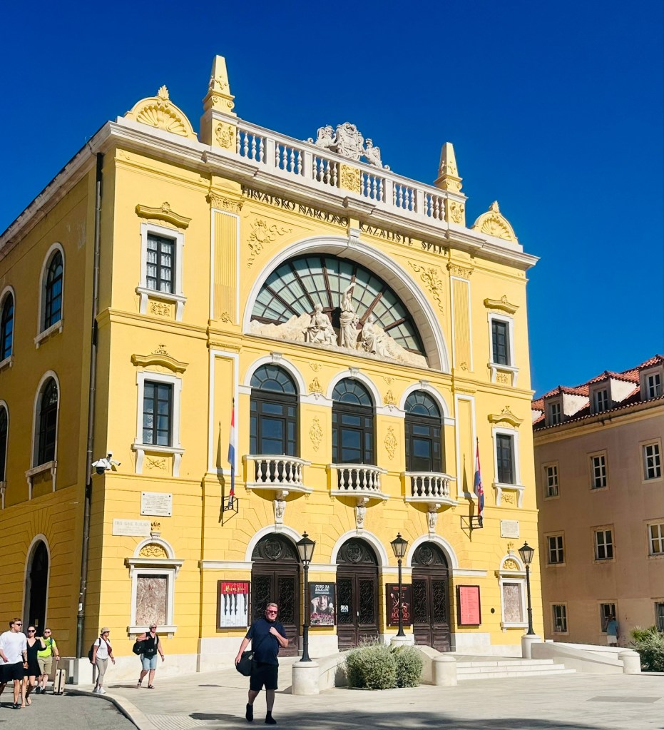 Walking around old town split in the early morning and being lost of on purpose led to me discover several beautiful buildings including the bright yellow building- Croatian National theater building built in 1893