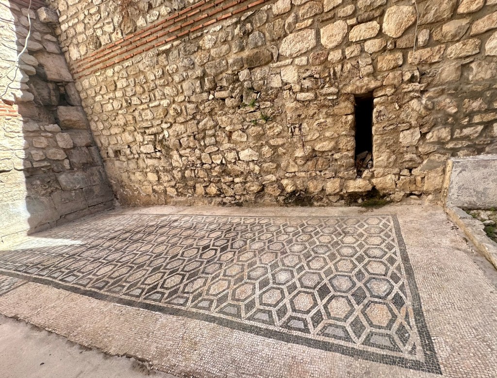 • Mosaic – A geometric floor mosaic, made by the mosaic workshop from Salona in late 4th and early 5th century