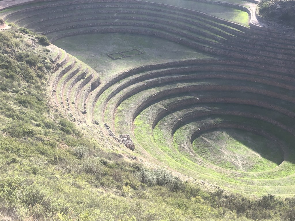 Moray Agricultural terraces: Second stop on this trip was the visually stunning Maray ruins that are few miles away from Moras. There are several theories as to why these terraces were constructed including possible alien landing site, but most accepted theory is that these terraces are created as agriculture research stations. The concentric circles look like an amphitheater and known to have a vast temperature range (up to 15 C) from top to the bottom thus creating microclimates where Incas could study impact of temperature and other conditions on crops. The more I learn about the ancient cultures, more I am impressed with their ingenuity as well as their advanced knowledge of engineering and Technology. Whatever is the reason behind these marvelous terraces, they are definitely stunning to see.