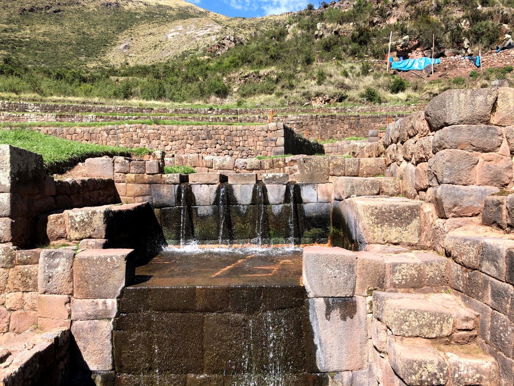 Tipon- Tipon is about 22km from Cusco but with traffic felt like it was 100 km away. Tipon ruins are one of the most intact irrigation systems in the Inca world, and you can see the ingenuity of the Incan engineering with canals and fountains that are being fed by melting ice from the top of the mountain. You can spend half a day to full day here depending on your interest, but we spent only couple of hours as everyone was tired of seeing ruins. This site is definitely unique, and you will probably appreciate more if you haven’t already seen other Incan ruins. One thing that stood out for me with this site visit was it felt so far away from Cusco, and we couldn’t get any vegetarian food. There were plenty of restaurants serving fried Cuy and if you want to try this Peruvian delicacy, this will be a good place. We landed up buying Fruit cake, chips and other snacks from a roadside store and ate it as lunch. For more detailed description of the place and what you can do here check out this blog as I feel like we were so tired by the end of our trip that I took only 1 photo of this place and wouldn’t do justice this place.
