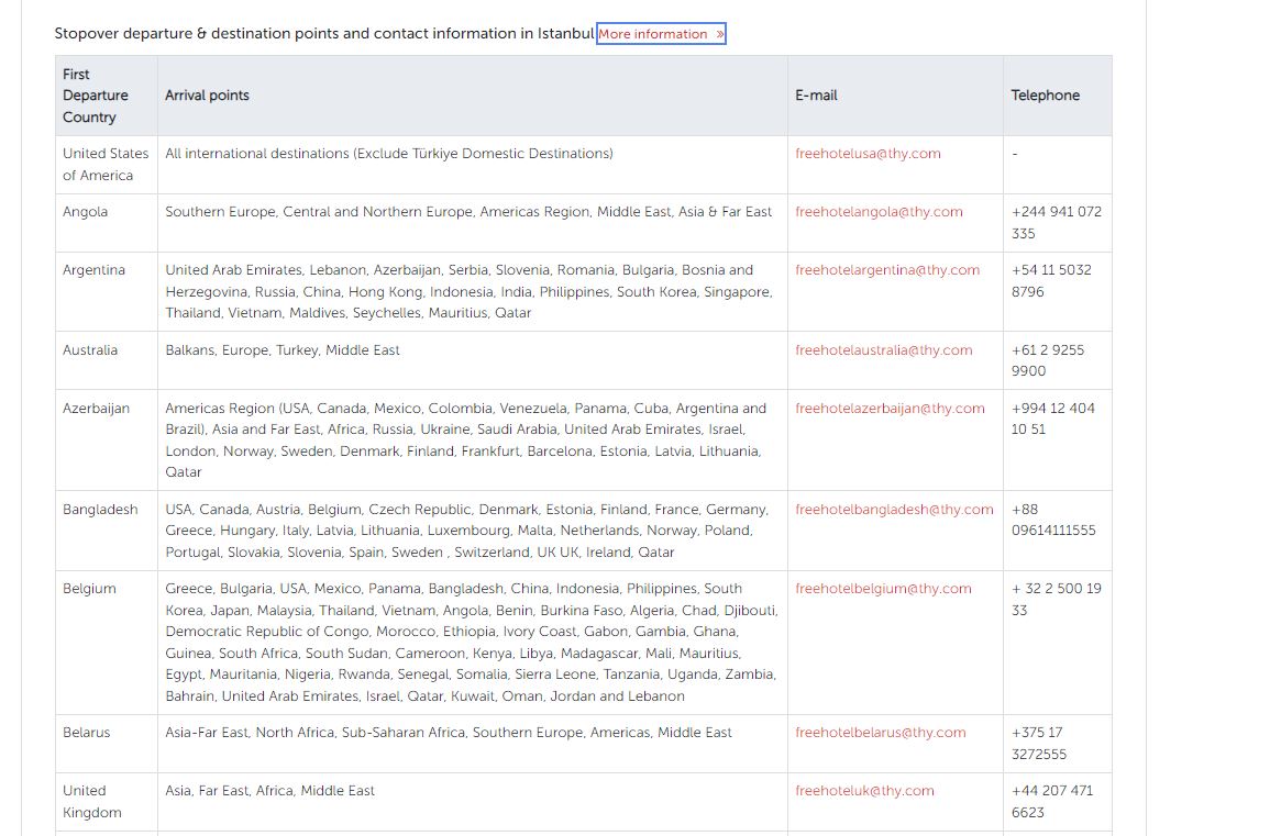 • Please refer to this webpage for all the details and reach out to Turkish airlines for your eligibility. Contact email for Turkish airlines for hotel if you are traveling from USA : freehotelusa@thy.com. For each country there is a different email and more details can be found here