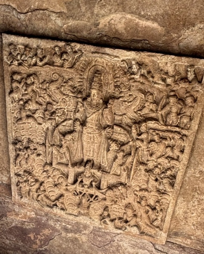 A little before the road bends toward the grand Vijaya Vittala Temple, the Kuduregombe Mantapa appears like a quiet sentinel of the past. This three‑sided pillared pavilion, built during the Vijayanagara Empire, takes its name from the striking horse‑rider sculptures carved onto its front pillars—kudure meaning horse and gombe meaning doll or figure. . Though its original purpose remains a mystery, its strategic placement along this ceremonial route hints at a role in the vibrant temple life that once animated these streets.