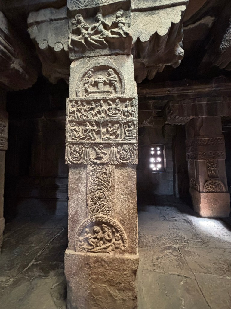 - Four spacious halls are supported by piers. These piers are carved from single granite blocks. Each pier is a sculptural marvel of yalis, musicians, warriors, and mythic beings.